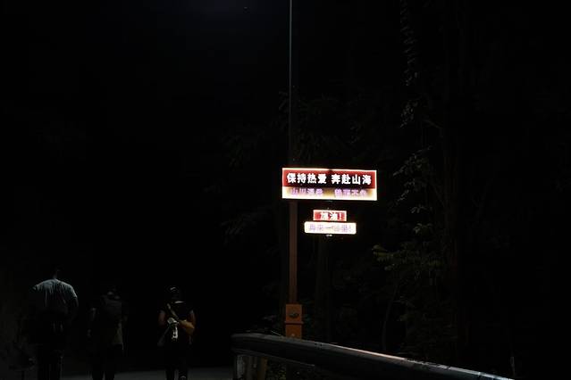 夜爬口检票进入,11点之后就没有景交车咯,真的蛮远的,还是建议花10RMB坐一下景交车,在车上还等了一会儿,10点半这样到达真正的夜爬起点开始夜爬