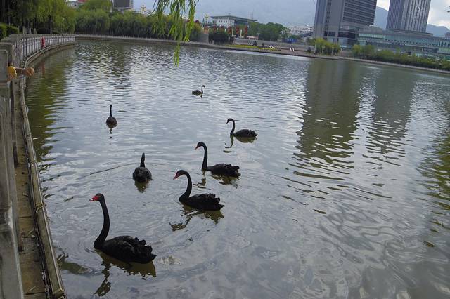 临沧市区,我们来到玉龙湖公园,享受悠闲的暮色时光。玉龙湖位于市区北部新区,是城市的一颗明珠。澄澈的湖水波光粼粼,岸边绿树成荫,黑天鹅在湖面上优雅地游弋。