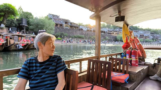 正午阳光炽烈,江水闪耀着碎金般的光芒,两岸青山浓墨重彩,大地蒸腾的热气让眼前的景色多了几分朦胧的诗意。待到夕阳西下,晚霞将天空染成橘红色,余晖洒在江面上,波光粼粼,归巢的鸟儿掠过江面,为这方天地增添了一抹灵动的剪影。