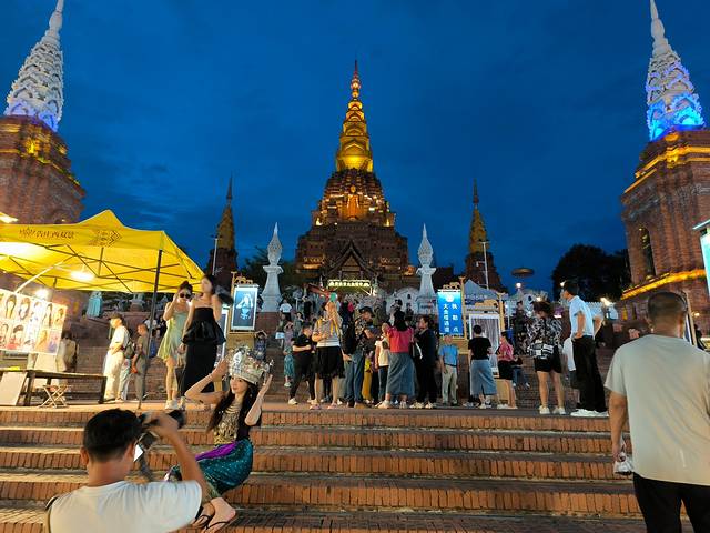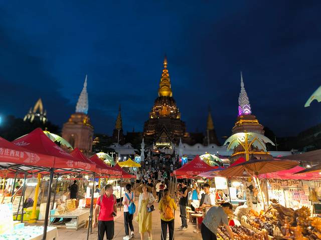 这里融合了东南亚饮食、人文、民俗工艺及特色“夜市”文化,涵盖了民俗活动、民族文化培育、文旅产业孵化、教育实践、影视基地、文化演艺、景区景点、旅游购物等综合性服务功能。上千个特色摊位布局与大金塔寺恢弘的宗教建筑群、壮美的澜沧江江景交相辉映,成为西双版纳的城市形象新地标,热带夜生活风情的最佳体验地。