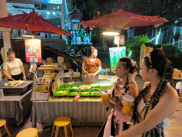 离开了神圣的勐焕大金塔,芒市街头巷尾的烟火气又将我拉回了现实。漫步在芒市的街道上,浓郁的东南亚风情扑面而来。街边的商铺里,摆满了色彩鲜艳的傣锦、银饰和各种精美的手工艺品,让人目不暇接。当地的美食更是令人垂涎欲滴。