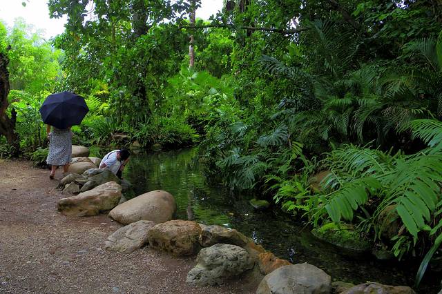 莫里瀑布位于瑞丽市区外20公里的热带雨林里,傣语的意思为“美丽的瀑布”。踏入莫里热带雨林的瞬间,暑气仿佛被无形的屏障隔绝在外。潮湿的空气裹挟着腐殖土与野姜花的气息扑面而来,藤蔓如绿色瀑布般垂挂在百年古树上,蕨类植物舒展着羽状叶片,为这条通往瀑布的小径编织出天然的穹顶。阳光透过层层叠叠的枝叶,在布满苔藓的石阶上洒下细碎光斑,恍若步入了《阿凡达》中悬浮山的隐秘角落。
