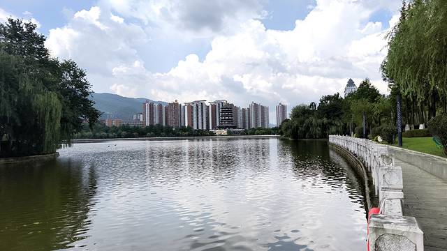 沿着湖边漫步,微风拂面,十分惬意。湖中心的锁水阁古色古香,为整个公园增添了几分历史的韵味。不少市民在湖边垂钓,孩子们在草地上嬉笑玩耍,处处洋溢着宁静与祥和。