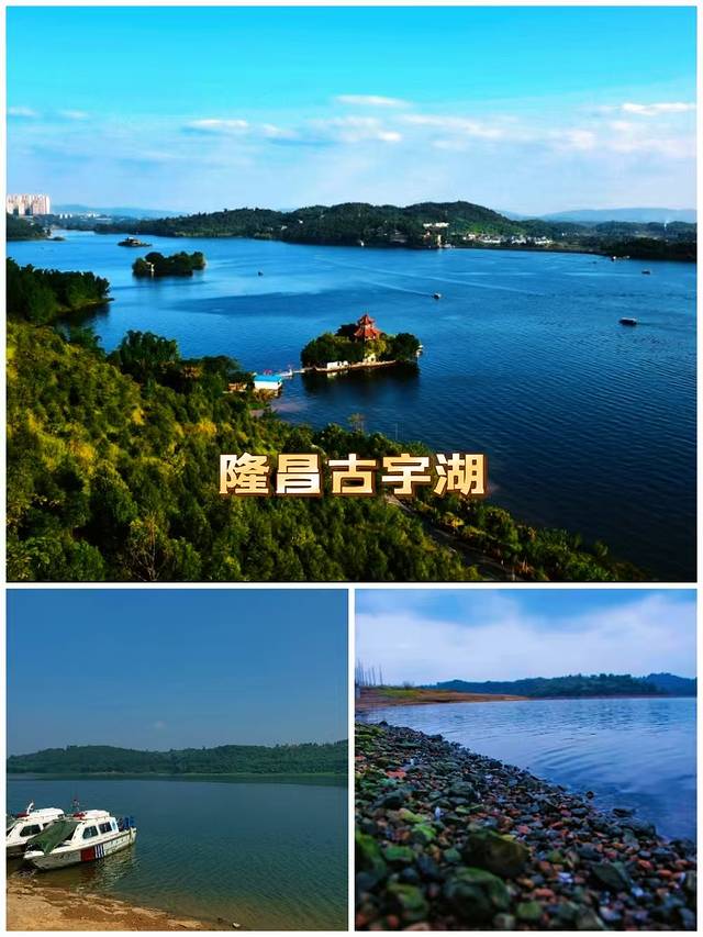 古宇湖,被誉为“川南明珠”的璀璨水域。得名于湖畔的古宇寺,寺庙的静谧与湖水的灵动相映成趣,仿佛是大自然特意安排的一场邂逅。这里,碧波荡漾,山峦环抱,自然之美与人文之韵交织成一幅动人的画卷,引人遐想,令人陶醉。湖面宽阔,波光粼粼,每当阳光洒落,湖面便如撒满碎银,闪烁着耀眼的光芒。湖中岛屿星罗棋布,形态各异,有的如青螺伏水,有的似翠盘托珠,为这宁静的湖面增添了几分生动与趣味。