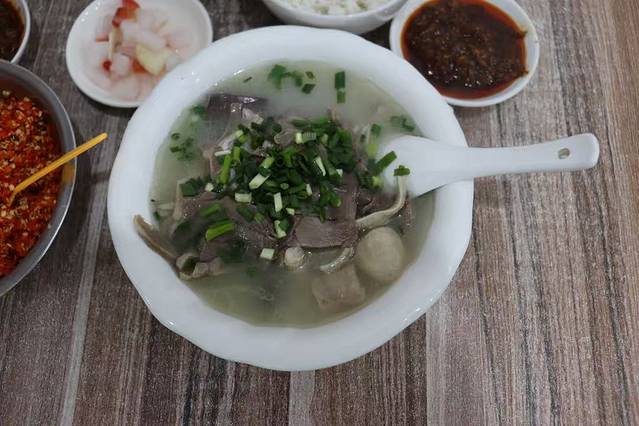 晌午时分,羊肉汤馆里热气蒸腾、食客盈门。铁锅中乳白的浓汤翻涌,薄透的羊肉片静静卧于青瓷碗底,浇上慢火熬制六时辰的醇厚骨汤,点缀几缕嫩绿葱花,馥郁香气里融合着沱江畔独特的草木芬芳。店主盛汤时总会多添一勺,笑着说:"咱隆昌的羊,吃的是青石缝里的嫩草。"这番话常引得老顾客们开怀大笑,眼角眉梢尽是满足。