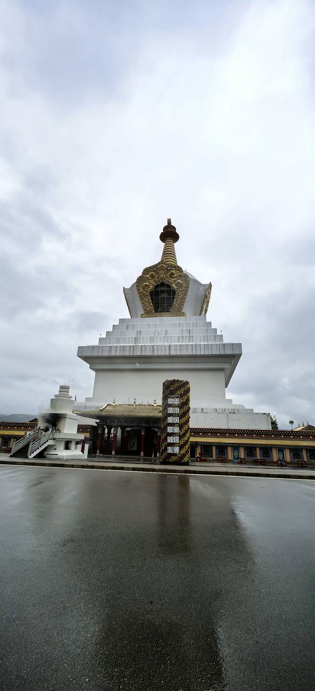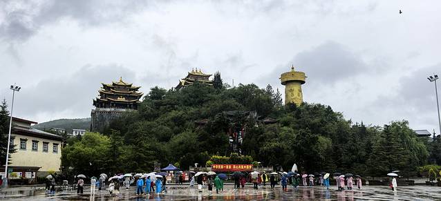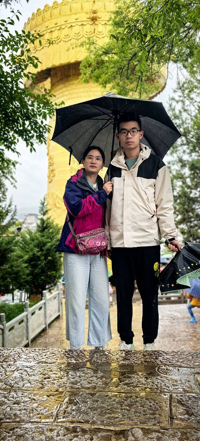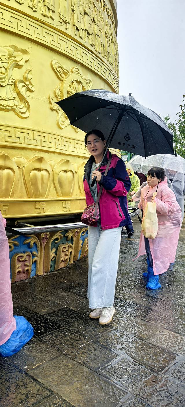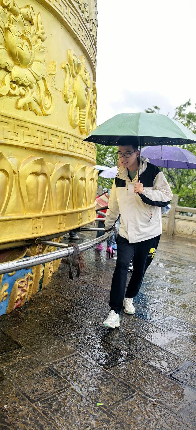 下了一个晚上的雨,一直没停。吃好早饭,到大佛寺转转。世界最大转经筒,转三圈,消灾解难,带来一世好运。儿子是出工又出力的,估计以后运气会很好。