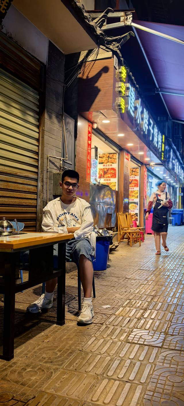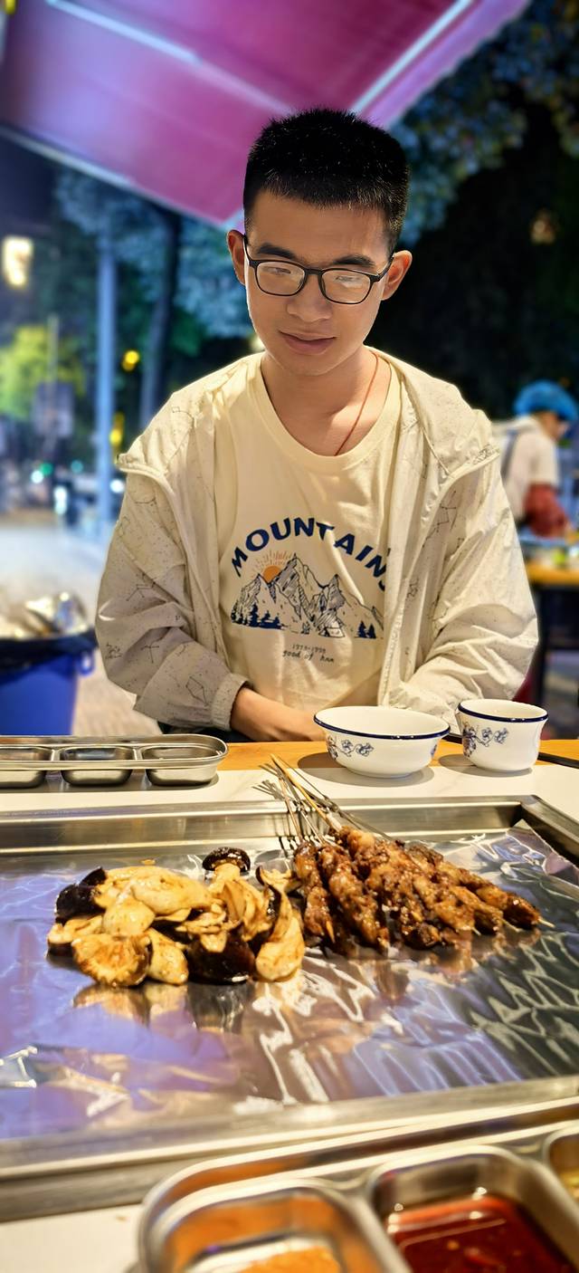 到客栈已经十一点了,楼下就有烧烤店,香味勾动了食欲。带儿子下来整一点。