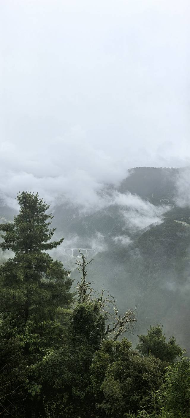 为了省钱,司机走的是国道。车速不快,沿途风景真的很好,这倒是高速上看不到的,因为高速基本都在隧道里。可惜这几天天气不好,云雾缭绕。