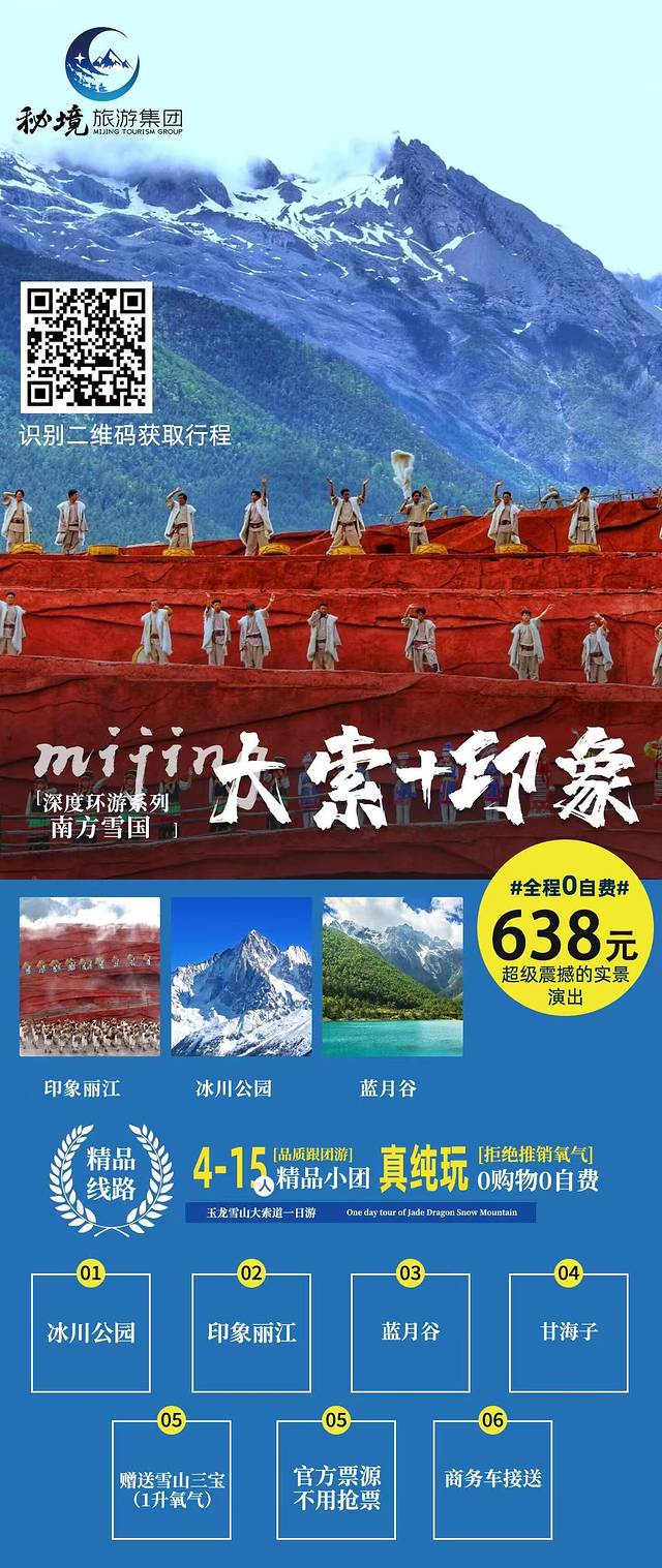 638元包含大索道和印象丽江门票,中午一餐饭,不算便宜。但是好在是一家人单独成团,服务会更好一点。不需要自己操心。