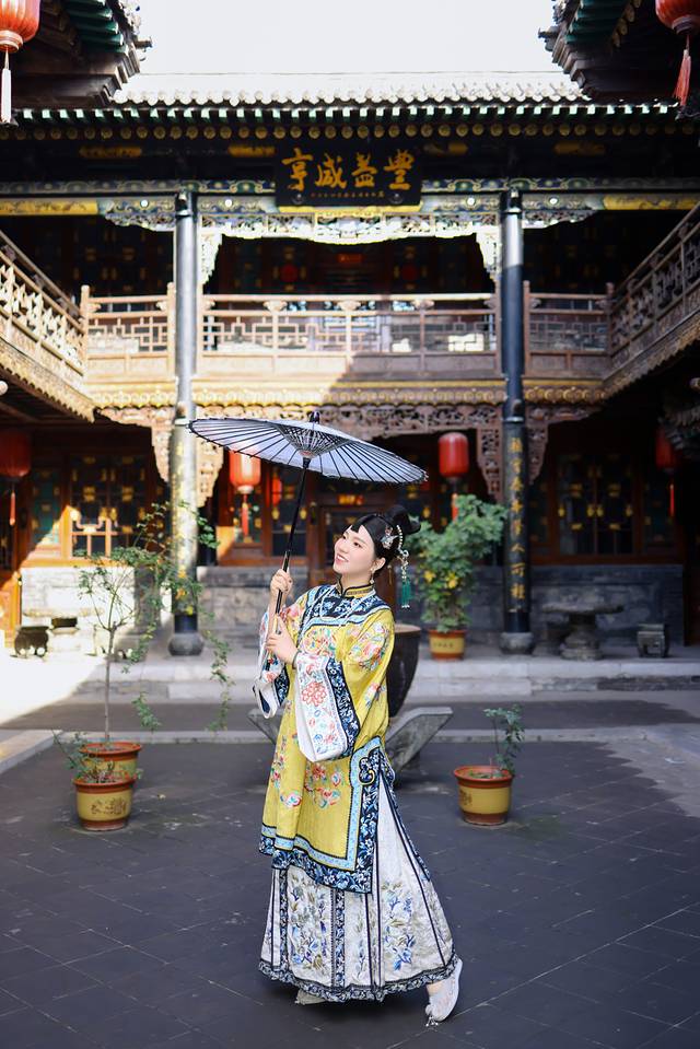 第一个当然就是最近火爆的晋商少奶奶造型了,去古城,你不拍一套古风旅拍,真的不知道自己有多美!我去的是西棠旅拍,他家最大的特点就是有一个专属的古宅院拍摄基地,这个就很方便了,而且他家的有些衣服特别精致漂亮。他家晋商少奶奶和晋商大小姐的衣服和头饰都很有意境,拍出来照片古风感拉满,沉浸式体验古城的无限魅力。