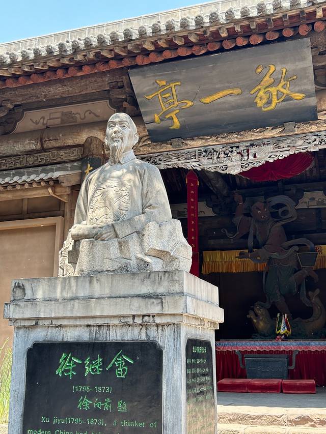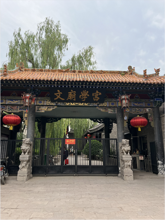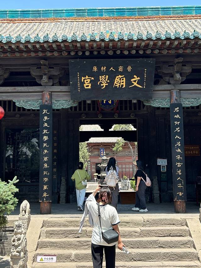 跨入文庙主入口棂星门,便是文庙的第一进院落了,这里有文庙的象征性建筑泮池,它的围栏石板精雕各式吉祥图案,有琴、棋、书、画……文庙没有现代化多余的掺杂,保留了这里的原汁原味,小课桌还在那里仿佛依稀可见当年这里教学的场景,有一面墙上还刻着历 山西 杰出人才的名字,是一个教育展示圣地,在这里有幸观摩了当年科举状元的真迹,登上阁楼二层,还领略到了古城的街景,这是在地上所不能感受到的,很是壮观。