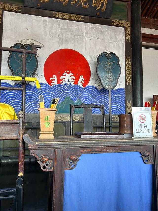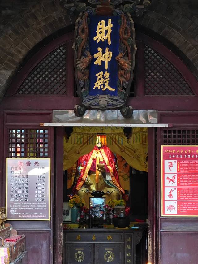虽然没有很新,但看着却极富年代感,试想能与这千年古城一样这么多年都保持风貌当真不易。庙内的格局据说是 和平 遥县衙相对应呢,庙门至献店之间还有戏台和钟鼓楼。献店的左右分别有灶君庙和财神庙,它们横向联接在中轴线上,从献殿以北的城隍殿延伸至寝宫,上建阁楼。灶君庙之后是道院。财神庙的正位是财神殿,上建真武楼,前有献殿,对面是一座建筑工艺精湛的戏台,别出心裁地建在拱券山门之上。