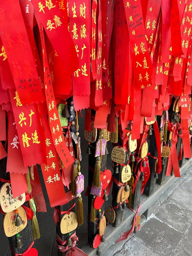 这里向来也是以文化氛围浓厚而成九流百家的聚集之地,映入眼帘的城隍庙并没有那么有新意,反而还是旧旧的,仿佛吹大一点的风这木质架构的外观就要倒下去了一样,我蹭旁边一个旅行团的导游,听介绍说这里自从建成以来就保持这个样貌了