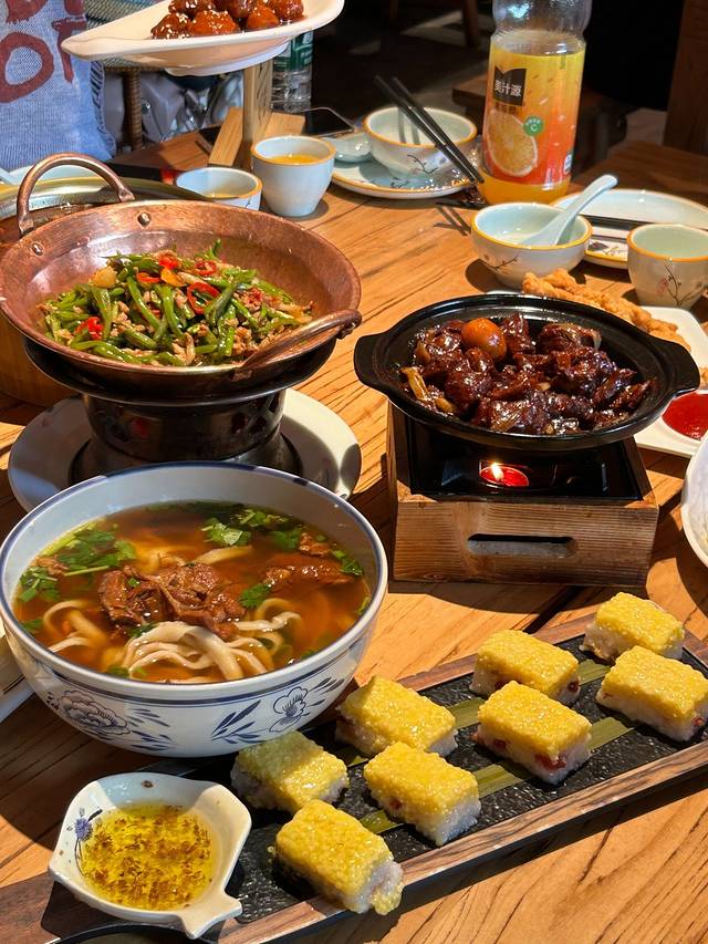 听推荐点了几个招牌菜,图片可能看不出来,实际份量真的好大啊,而且巨好吃!黄米凉糕清凉爽口,黄米的清香和甜甜的桂花蜜很好融合,我的心头爱!老陈醋焖牛肉很下饭,滑嫩的牛肉裹上满满的汤汁一口下去,酸中带甜简直不要太好吃!烂糊白菜汤暖身又好吃,里面还有虾仁、肉糜等,很大一份,都够好几个人吃啦~其他的 比如 糖醋丸子、香醋鸡蛋、酸汤莜面鱼鱼等味道也是真不错,一个菜都没有踩雷!
