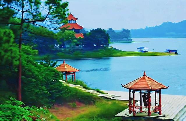 午后,我驱车前往古宇湖。阳光下的湖水波光粼粼,湖边柳树随风摇曳,倒映水中,如诗如画。我租一艘小船,泛舟湖上,微风拂面,带来阵阵清凉。水鸟掠过湖面,留下一圈圈涟漪,远处青山与湖水相拥,构成天然山水画卷。我在湖边小亭歇息,望着这如画景色,心中满是宁静与惬意,烦恼被湖水冲刷得一干二净。