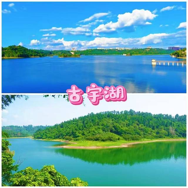 漫步在古宇湖边,脚下是坚实的石板路,身旁是随风摇曳的垂柳和盛开的花朵。不时有候鸟飞过湖面,它们或翱翔天际,或轻点水面,为这片湖泊带来了无限的生机与活力。湖中的小岛宛如一艘艘绿色的巨舰,静静地停泊在水面上,岛上树木繁茂,鸟语花香,仿佛是一个与世隔绝的世外桃源。乘船游览古宇湖,更是别有一番情趣。小船在湖面上缓缓前行,划破平静的水面,泛起层层涟漪。透过船窗,可以清晰地看到湖底的水草摇曳生姿,鱼儿穿梭其中,自由自在。远处的山峦、岛屿和湖畔的景色逐渐远去又不断变换,如同一幅流动的画卷在眼前徐徐展开,让人心旷神怡,忘却一切烦恼与疲惫。