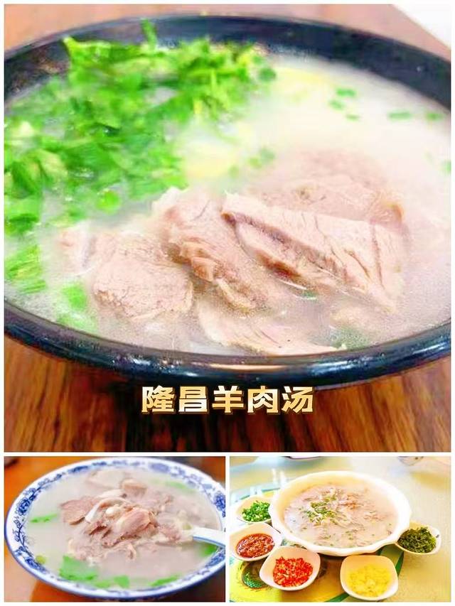 一碗正宗的隆昌羊肉汤端上桌,汤汁如丝般顺滑,入口甘甜,鲜味在舌尖上跳跃、蔓延,仿佛能尝到山川的灵气、草木的芬芳。羊肉薄而不柴,轻嚼几下,细腻的肉质与鲜美的汁水交融,顺着喉咙下滑,温暖从胃里升起,驱散周身的寒意。搭配上当地的辣椒面、花椒粉、香菜等调料,食客可以根据自己的口味喜好调配,或麻辣鲜香,或清新原味,每一种吃法都是一次独特的味觉冒险。