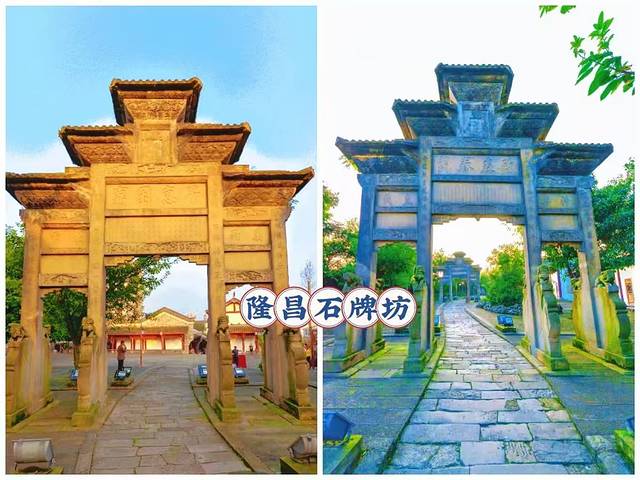隆昌石牌坊多为青石材质,历经岁月洗礼,更显古朴厚重。其造型丰富多样,有冲天式、门楼式等,每一种样式都蕴含着独特的寓意与美感。牌坊上的雕刻更是鬼斧神工,令人叹为观止。画面中,人物形象栩栩如生,或威严庄重,或温婉娴淑,仿佛穿越时空而来;花鸟鱼虫灵动逼真,花卉娇艳欲滴,鸟儿振翅欲飞,鱼儿摇曳生姿,尽显自然生机;还有那寓意吉祥的龙凤麒麟、暗八仙等图案,无不展现出工匠们精湛的技艺与丰富的想象力。他们以刀为笔,以石为纸,将世间万象浓缩于方寸之间,赋予冰冷的石头鲜活的生命与灵魂,让每一座牌坊都成为不可复制的艺术珍品。