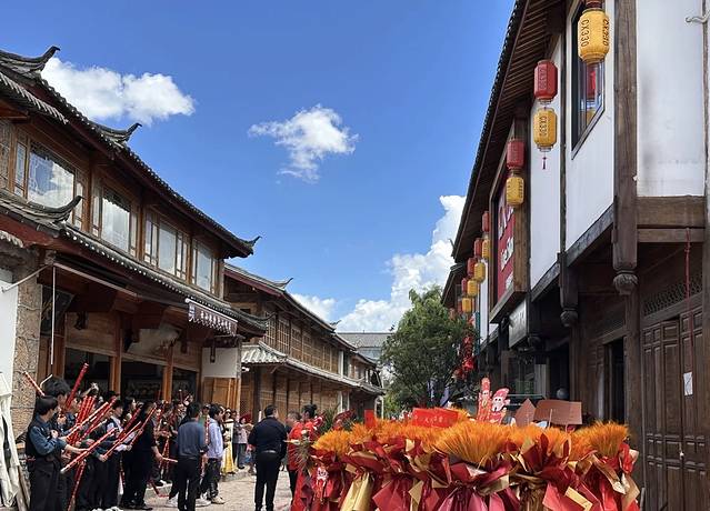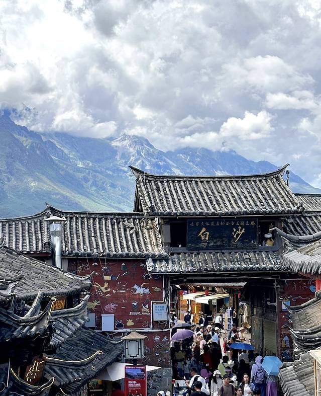 白沙古镇的人气比束河古镇旺,也许是离玉龙雪山近的缘故?这里给人一种没有完全规划好的原生态感,但其实商业化程度也挺高了。在这里慢慢逛着,喝喝“纳西公主”奶茶,吃几串牦牛肉串,再去网红咖啡店买杯咖啡,借机上二楼拍个带玉龙雪山的照片,看看穿着民族服装拍照的漂亮小姑娘们,这就是我打卡白沙古镇的方式啦。