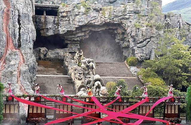 “丽江千古情”景区应该要被当作一个小型游乐场来玩的。里面不仅有“丽江千古情”这一个为时一个小时的大型表演,还有“丽江恋歌”这种二十分钟的实景表演,更别说各种各样的小节目了。