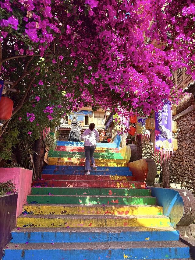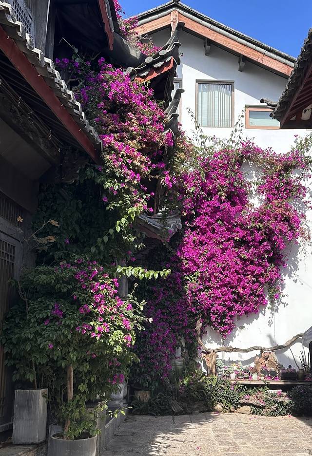 父母二十年前来过丽江,据他们说,那时的丽江古城还是很小的一个地方,也不如大理古城好看。可如今的丽江古城却发生了天翻地覆的变化,街道美丽整洁,处处有艳红如晚霞的三角梅,一路行来,木府,四方街,大研花巷,丽江之眼,大水车,都是各有各的美。晚上还可以去忠义夜市大快朵颐。