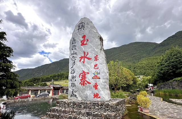 玉水寨是一个关于东巴文化的4A级景区。我们在从白沙古镇打车前往这里的路上,白云突然移开,玉龙雪山清晰地呈现在我们的面前。可惜在车上不好拍照。