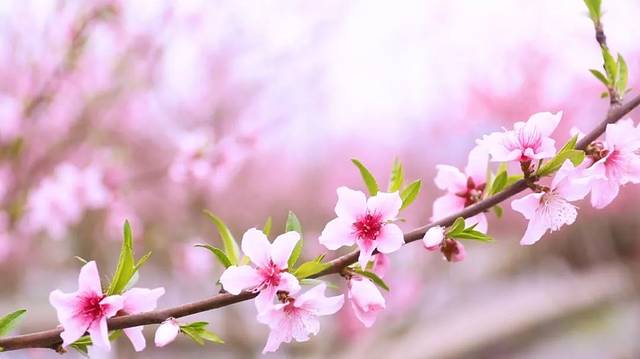当桃花吻醒山峦的晨雾