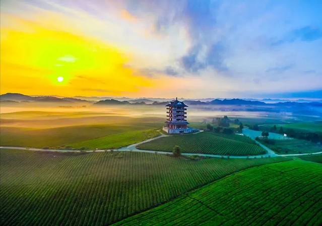 湄潭标志性茶园的永兴茶海,也被称为中国茶海,这里有全球最大的连片茶园,其连片面积近4.3万亩。茶树随着山地的弧线起伏,如海浪般涌动,这是真正的绿色海洋。