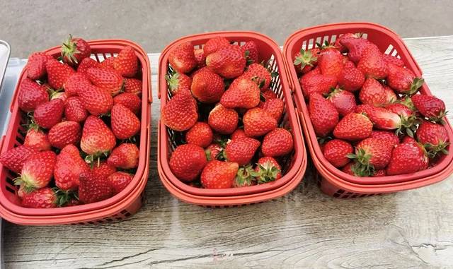走进草莓园大棚内,一阵草莓的香甜扑面而来。放眼望去,一垄垄绿色的草莓苗生机勃勃,白色的小花、嫩绿的蓓蕾和一颗颗色彩鲜艳的草莓点缀在绿叶繁花之间,有的鲜红似火,有的粉白如玉,让人垂涎欲滴。