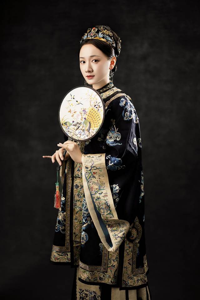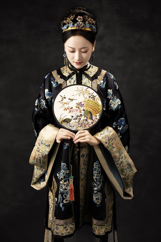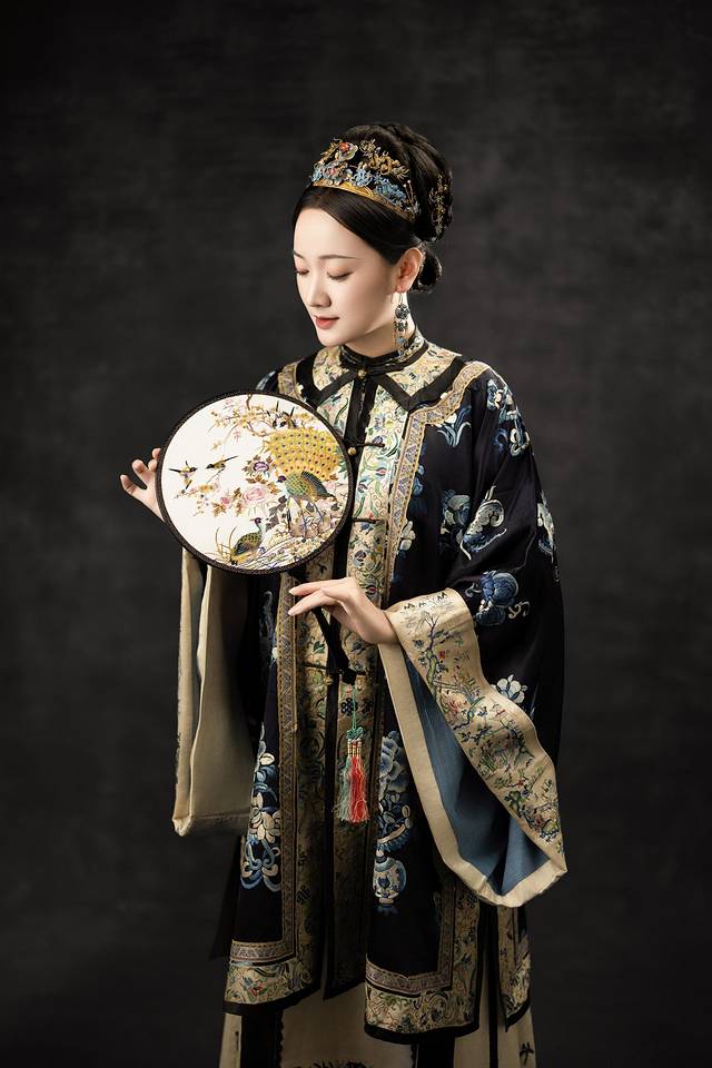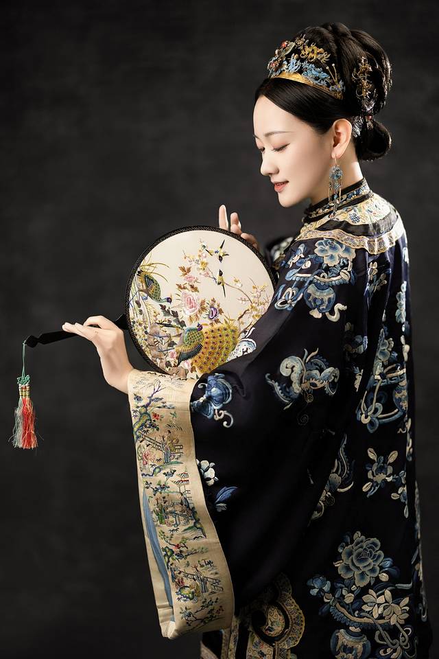 更绝的是点翠头面,翠羽流转出孔雀蓝的光泽,连耳坠都是真正的清代老银鎏金。迫不及待换上这件古董衣,突然懂了《花样年华》里苏丽珍的摇曳生姿。