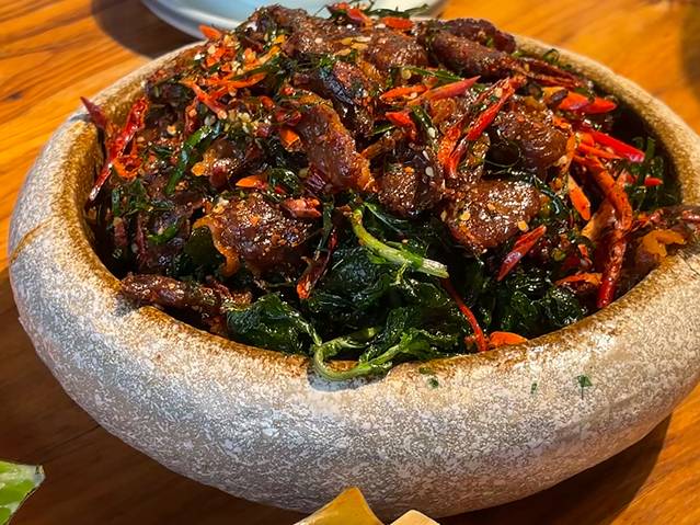 这家店也算束河古城必吃榜吧,菜味道不错,四个人七个菜吃光啦,汽锅鸡很好喝!推荐!这个季节正好是菌菇季,很鲜美,小锅饭也很香,大家记得早点来,不然可能要排会队。