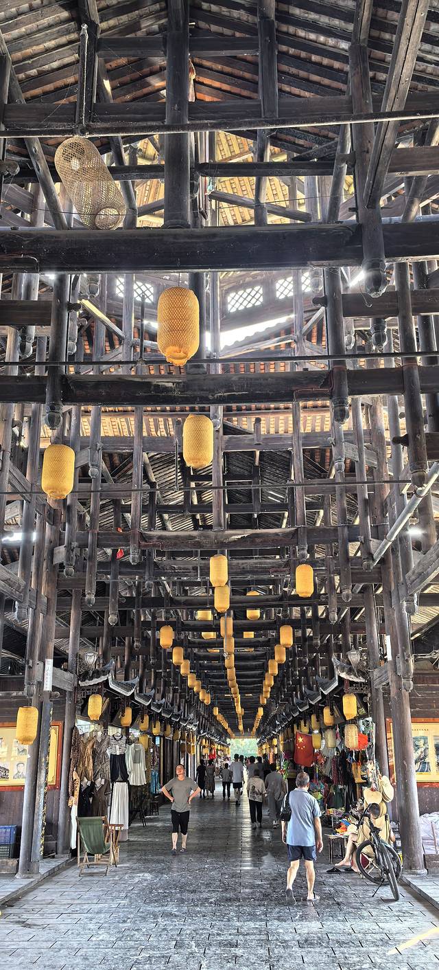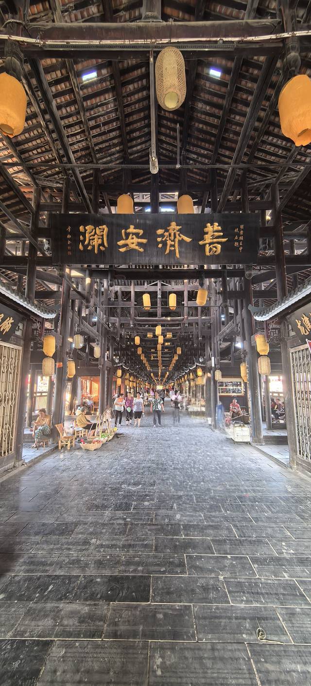 人行道两侧长廊共设厢房式店面94间,使其不仅具有旅游观光、交通往来的功用,而且还是风雨桥商业步行街,长长的桥廊上相隔不远就建有一座桥亭,一共是7座桥亭,中间最高的一座桥亭高17.99米。登上亭台可以观赏舞水两岸风光。 ---《摘自百度》
