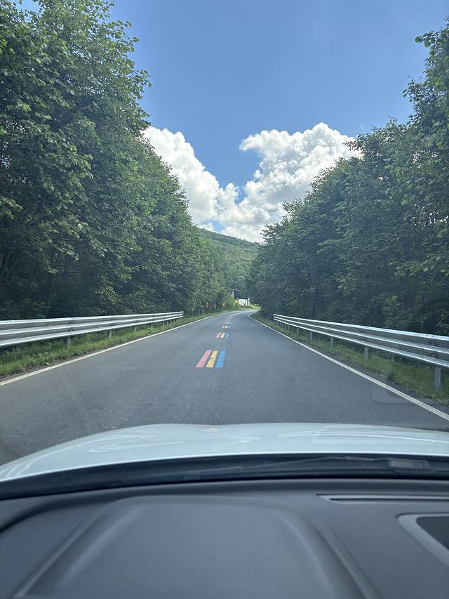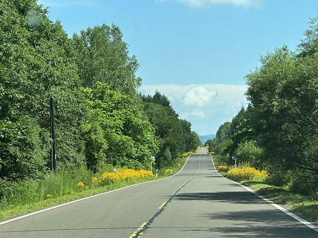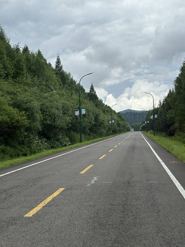 早上租车从哈尔滨出发伊春,全程约4小时,我们从下面乌带公路走了一段,没有江南的高温湿热,这里凉风习习景色宜人