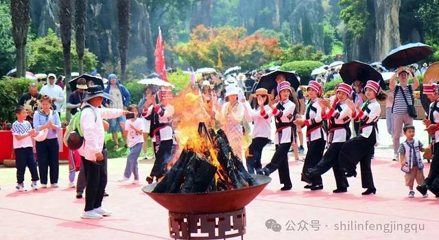 上一秒在家喝茶 下一秒在石林玩火把