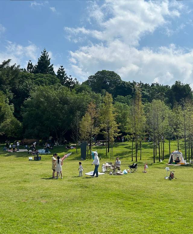 转过一道山脊,眼前突然出现一片开阔的草坪。十几顶帐篷像蘑菇般散落其间,早起的一家三口正在收叠帐篷,父亲教孩子辨认草叶上的露珠。公园允许露营的区域用木桩明确标出,既满足了市民亲近自然的需求,又避免了对生态的过度干扰。