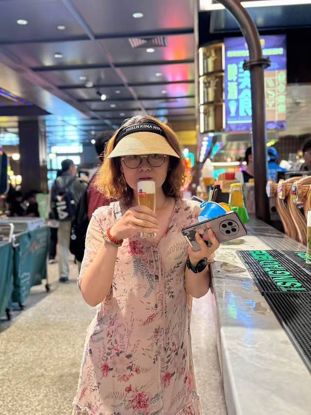 接着来到 B 馆,这里展示了青岛啤酒的酿造工艺。从空中露台进入现代化生产车间,在二楼玻璃廊桥可以看到啤酒是如何从原料一步步变成美味佳酿的,现代化的生产线高效有序,场面十分震撼。参观完发酵桶后,还有一个惊喜——在酒吧处可以免费领取一杯原浆啤酒和一份啤酒豆。原浆啤酒口感醇厚,泡沫细腻,一口下去,清爽的感觉瞬间从舌尖蔓延到全身,暑气也随之消散。