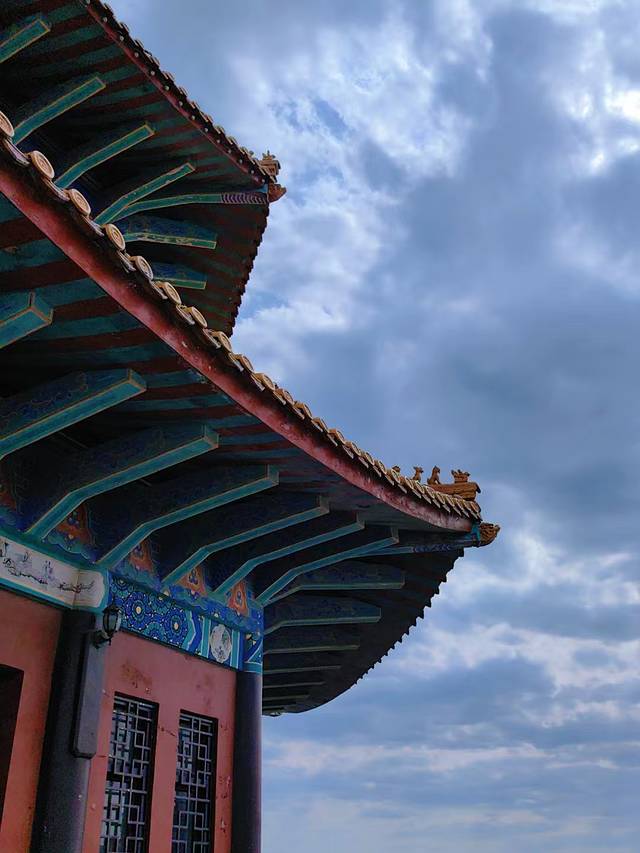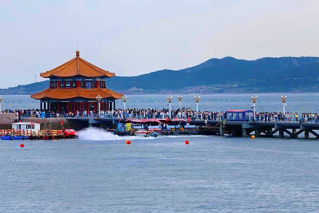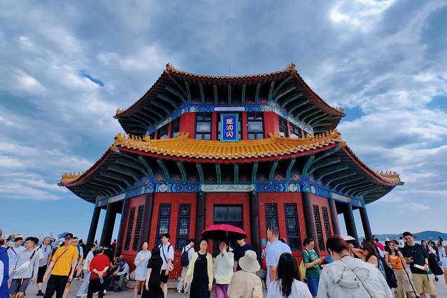 栈桥尽头的回澜阁,更是不可错过的打卡点。这座双层飞檐八角亭阁,在阳光的照耀下熠熠生辉。