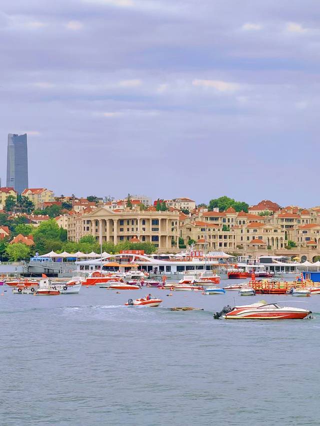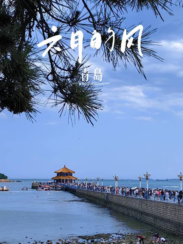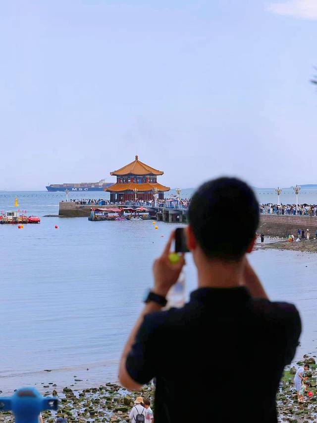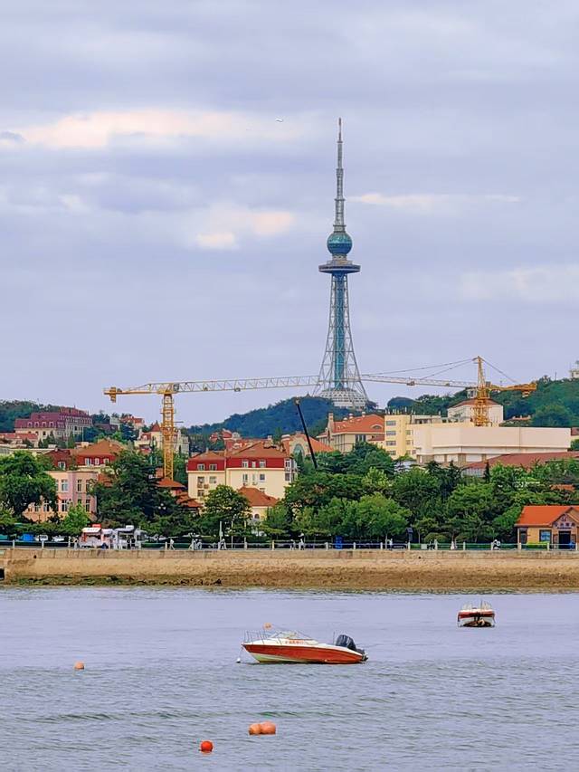 登上回澜阁,凭栏俯瞰,整个青岛湾的美景尽收眼底:远处的青岛绿树成荫,信号山天文台、电视塔屹立其上,为过往的船只指引着方向;近处的海滩上,人们或嬉戏玩耍,享受着这惬意的夏日时光,港湾里的游艇停泊着,每摁下快门均是一张美照。