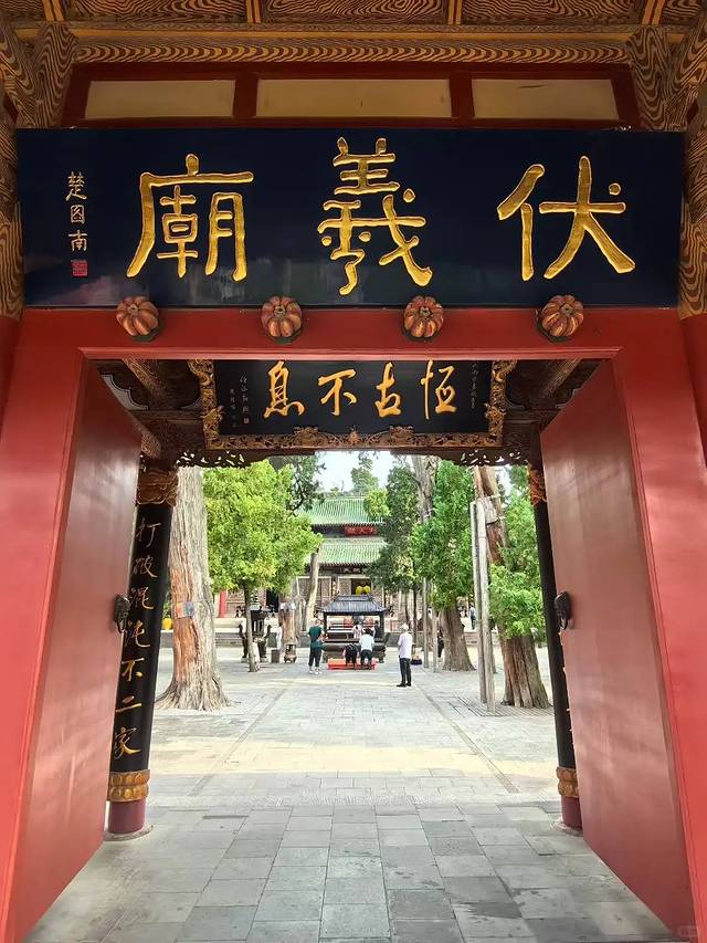 前往游览【伏羲庙】(停留时间约2小时)(伏羲庙坐北朝南,临街而建,院落重重相套,四进四院,宏阔幽深。庙内古建筑包括戏楼、牌坊、大门、仪门、先天殿、太极殿、钟楼、鼓楼、来鹤厅共10座;新建筑有朝房、碑廊、展览厅等6座。新旧建筑共计76间。整个建筑群包括牌坊、大门、仪门、先天殿、太极殿沿纵轴线依次排列,层层推进,庄严雄伟。)