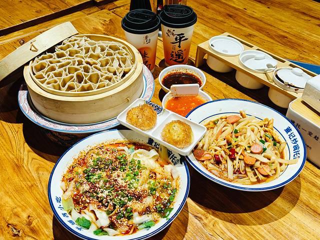 2、董记炒碗托:来 平遥 必不可少的就是碗托,作为当地出名的小吃店,董记的味道还是蛮正宗的,碗托做法也多样,炒碗托的师傅都是有着20多年经验的老师傅~他家可以试一下炒碗托、凉拌碗托、沙棘醪糟汤、油茶、油泼面和蘸汁栲栳栳,都很好吃