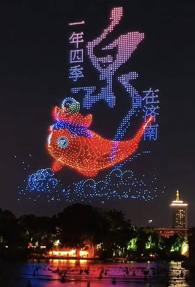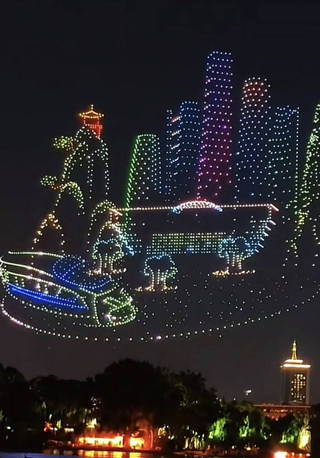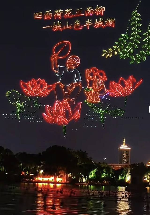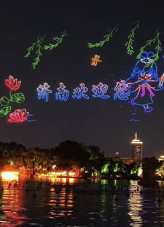 大明湖无人机表演:夜空绘就的泉城绮梦