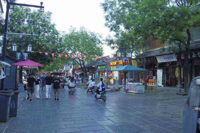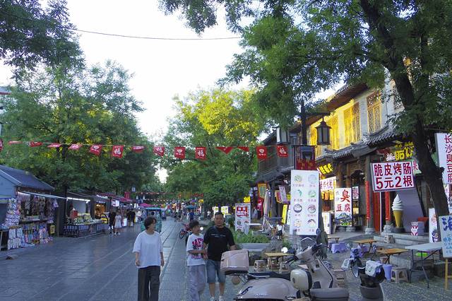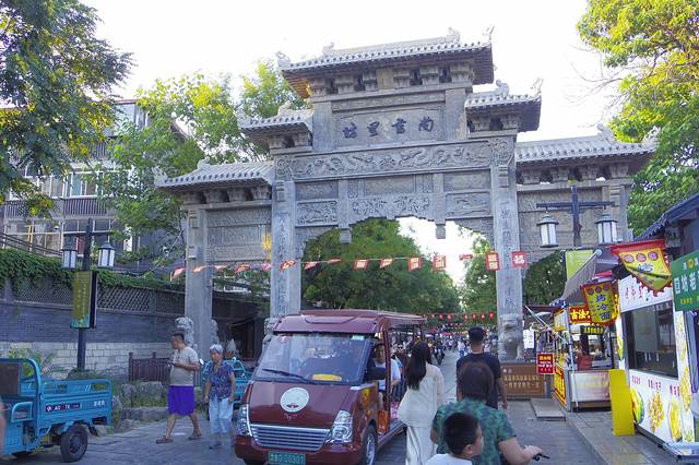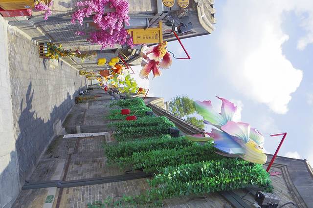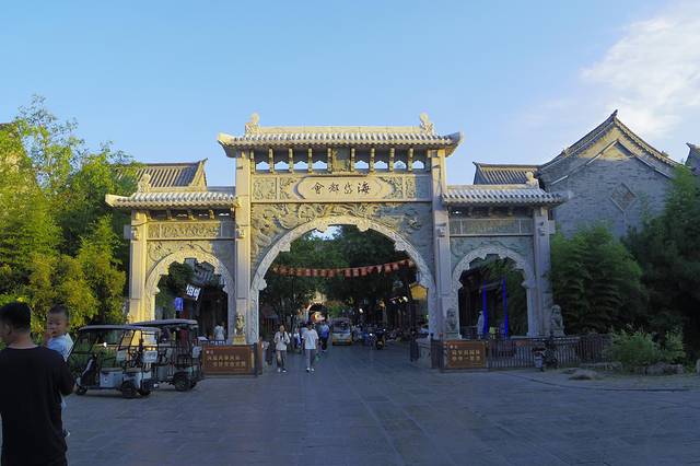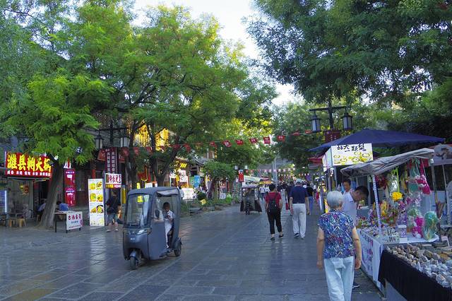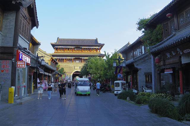 城门上斑驳的砖石,每一块都镌刻着岁月的痕迹,仿佛在向我诉说着往昔的繁华与沧桑。穿过阜财门,踏上那古老的青石板路,“哒哒”的脚步声仿佛是历史的回响。街道两旁,古色古香的建筑鳞次栉比,飞檐斗拱、雕梁画栋,每一处细节都彰显着古人的匠心独运。店铺的幌子在微风中轻轻摇曳,恍惚间,我仿佛看到了古代街市的热闹景象,商贩的叫卖声、顾客的讨价还价声交织在一起,构成了一曲繁华的市井乐章。夕阳的余晖洒在古城上,给这座古老的城市披上了一层金色的外衣,美得如梦如幻。此时的古城仿佛一幅宁静的水墨画,青瓦白墙、绿树红花,构成了一幅和谐的画面。