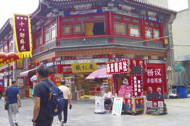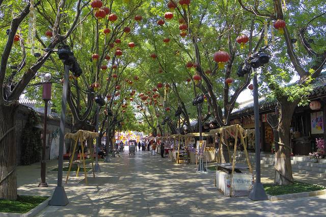 进入古镇,已经是上午十点多了,阳光炽烈。街道两旁的青砖灰瓦建筑错落有致,磨砖对缝,古韵十足,街道上摆满了售卖杨柳青特色民俗产品的摊位,琳琅满目,让人目不暇接。
