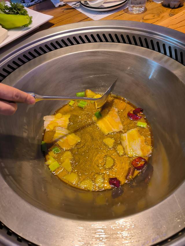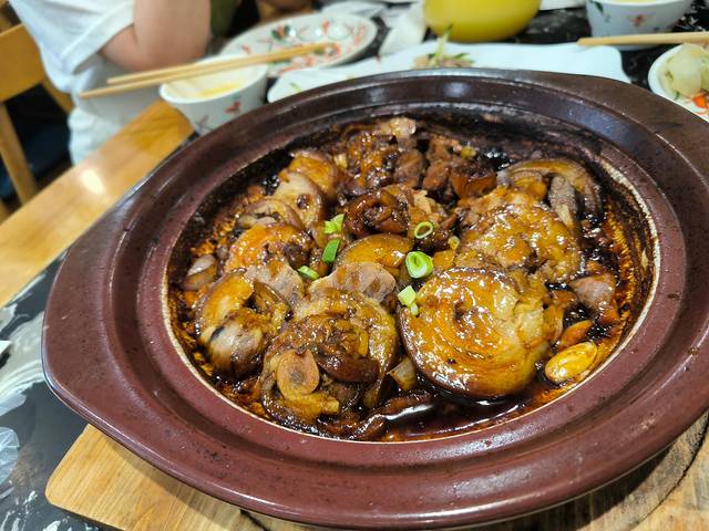 我推开了一家铁锅炖店的木门,“吱呀”一声,便撞进了满室蒸腾的热气与欢声笑语中。店内的装潢朴实又接地气,那砖砌的灶台,都透着浓浓的乡土风情。我点了一份招牌仔鸡排骨,套餐里还包括蒸花卷,大碴子粥等等,四个人根本吃不完。
