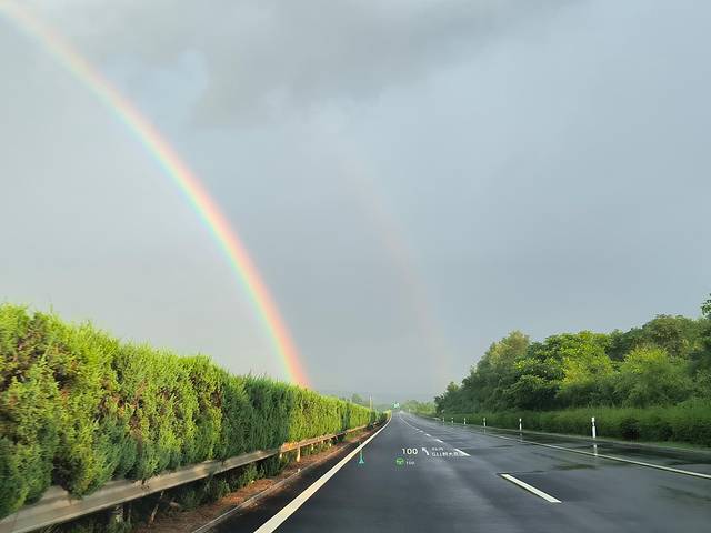 天津-丹东,830公里;进入京哈高速辽宁段,全线限速80,郁闷至极。宿丹东。幸好遇到彩虹。