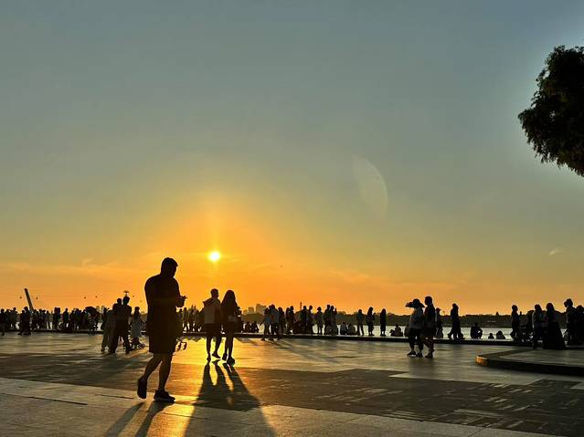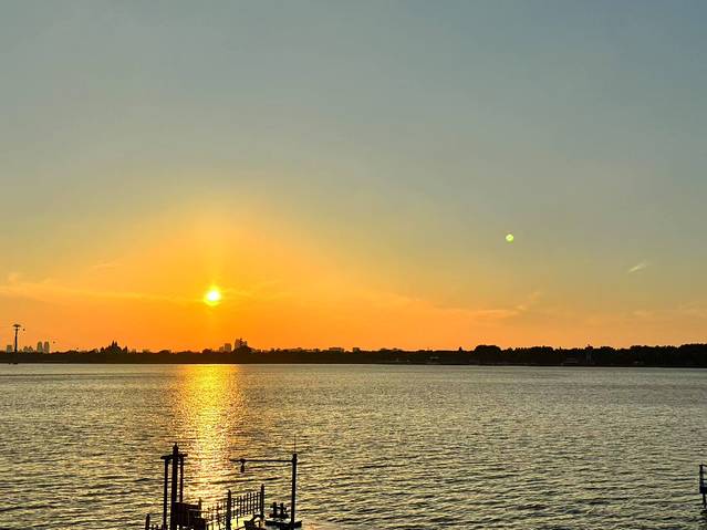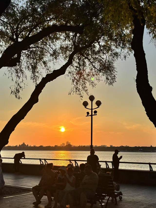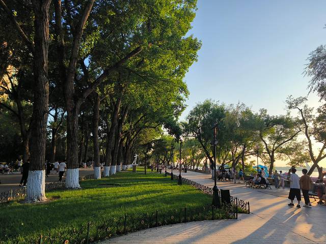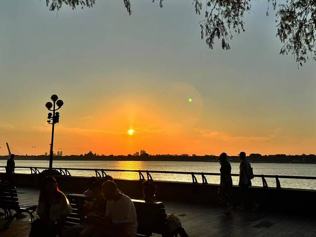 走到防洪纪念塔前,正是黄昏时分。松花江畔美翻了。