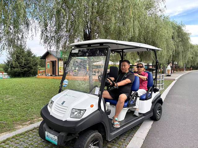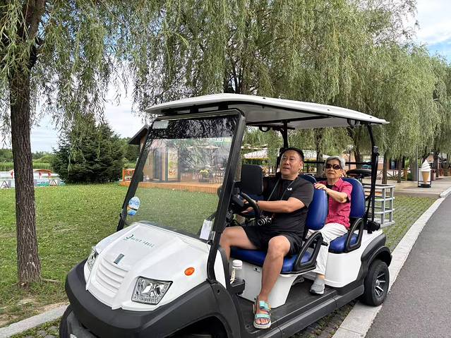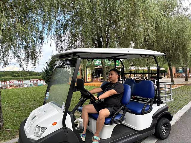 我在入口处顺利租到一辆四人自驾电瓶车,手续并不复杂,只需扫码填信息、上传驾驶证照片,支付1000元押金,再付100元每小时的租金,就能开启这段奇妙的自驾之旅。坐上电瓶车,微风轻拂,怀着期待,缓缓驶向公园深处。