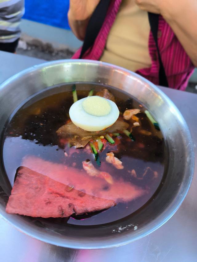 初闻延吉,是因它那满溢的朝鲜族风情,而真正踏上这片土地,才惊觉这里是一座被美食包裹的宝藏之城。我们走进一家不起眼的小馆子,准备品尝正宗的朝鲜族冷面。当冷面端上桌,我被这丰富的配料吸引:冰爽酸甜的牛肉汤,上面漂浮着晶莹剔透的荞麦面条,搭配着薄如蝉翼的牛肉片、黄澄澄的鸡蛋丝、翠绿的黄瓜丝、嫣红的泡菜和清甜的西瓜片,还有那必不可少的辣白菜,光是看着就让人垂涎欲滴。