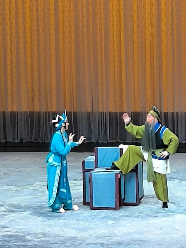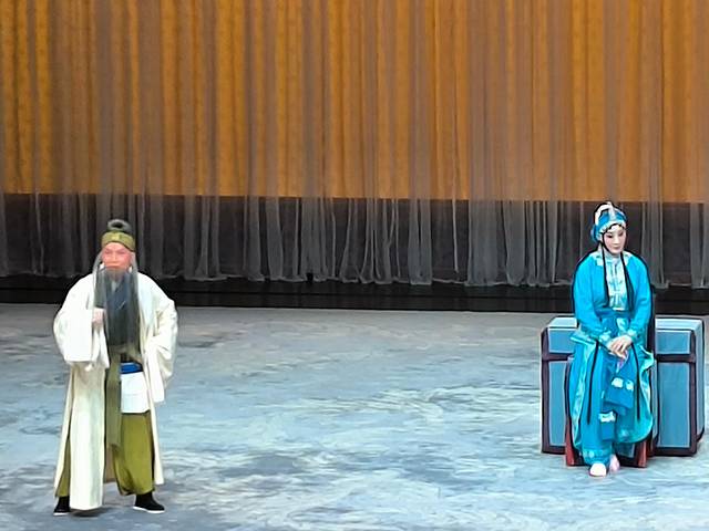大幕缓缓拉开,卢松饰演的萧恩率先登场,他一开嗓,醇厚的嗓音便牢牢抓住了观众的心。“昨夜晚吃酒醉和衣而卧,稼场鸡惊醒了梦里南柯……”那韵味十足的唱腔,将萧恩的心境细腻地展现出来,每一个拖腔都引得台下叫好连连。紧接着,魏海敏饰演的萧桂英轻盈亮相。她身着素净衣衫,举手投足间尽显梅派的优雅大气。“老爹爹在草堂呼唤于我”,她的声音清脆婉转,如同黄莺出谷,将萧桂英对父亲的关切之情演绎得丝丝入扣 ,眉眼间的灵动与娇俏,让人不禁为她的精湛演技折服。
