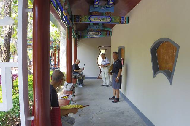 沿着园内的小路向西走去,便来到了水上游乐及延湖游览区。这里有长廊、水榭、湖心亭、白石桥、中合塔等建筑,古色古香,韵味十足。湖水清澈见底,微风拂过,波光粼粼,湖岸边的垂柳依依,仿佛是一个个羞涩的少女在湖边梳妆打扮。我沿着湖边漫步,欣赏着眼前的美景,感受着大自然的宁静与美好,仿佛置身于一幅美丽的画卷之中。